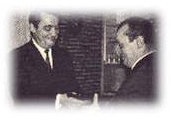 Bürgermeister Fritz Wurster übergibt Oberschützenmeister Manfred Bauer eine Luftpistole als Geschenk zur Einweihung 1971